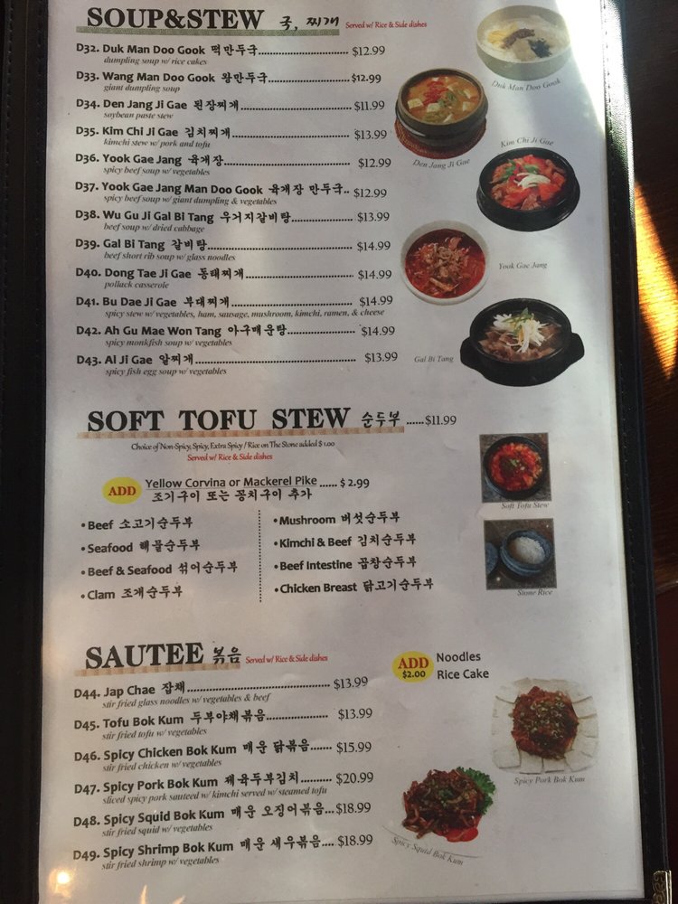 The extensive menu also boasts a range of soups and stews, such as the comforting Kim Chi Ji Gae (kimchi stew with pork) and the hearty Yook Gae Jang (spicy beef soup). Each dish is crafted to reveal the complex and bold flavors characteristic of Korean cuisine, and the restaurant prides itself on the use of quality ingredients.